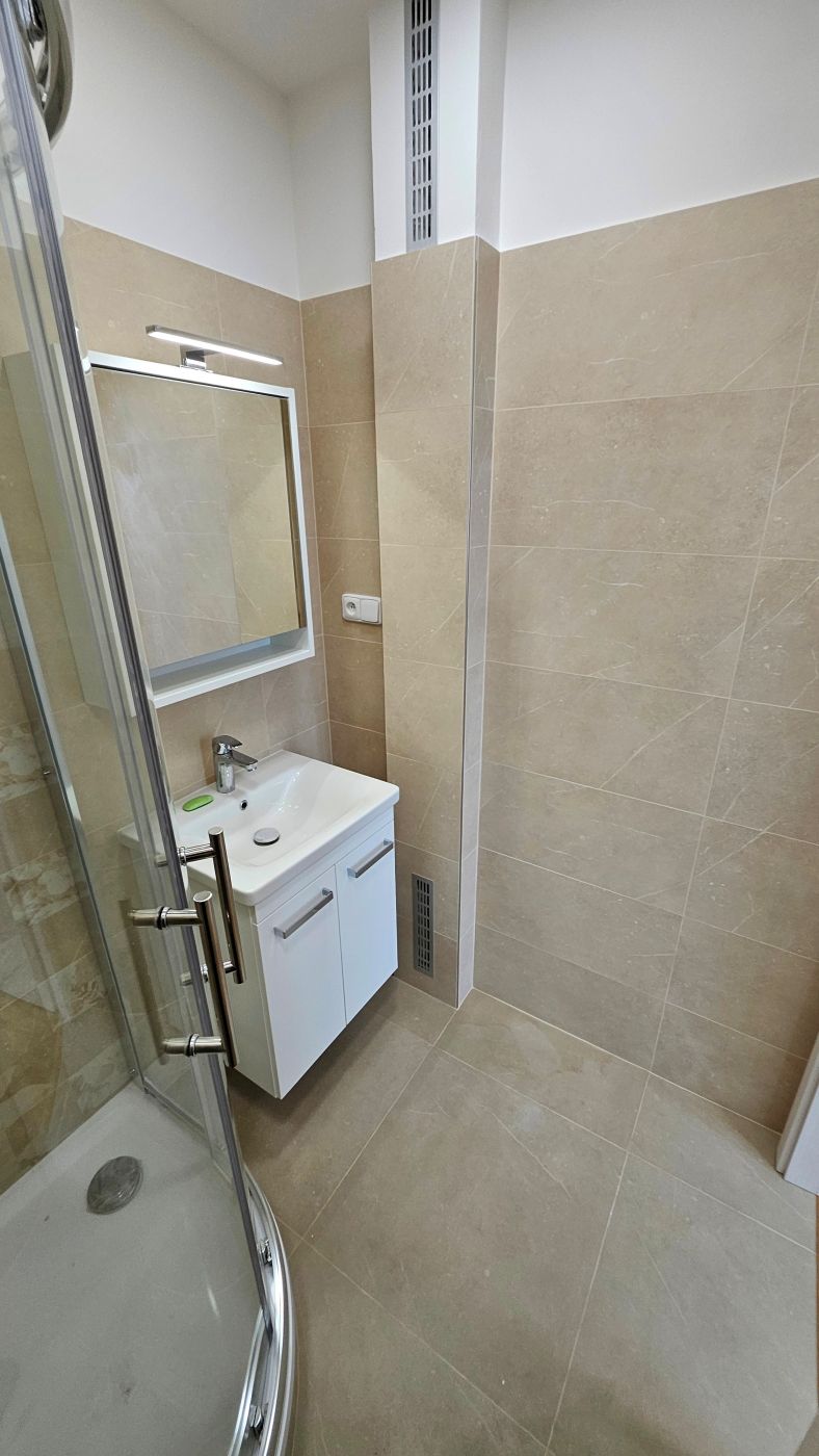 Byt je částečně vybavený – nová moderní kuchyňská linka včetně myčky, nové lednice, indukční desky, elektrické trouby. V bytě je komora, pokoje jsou nezařízené. V koupelně je sprchový kout. WC je samostatné. Po rekonstrukci v bytě ještě nikdo nebydlel.