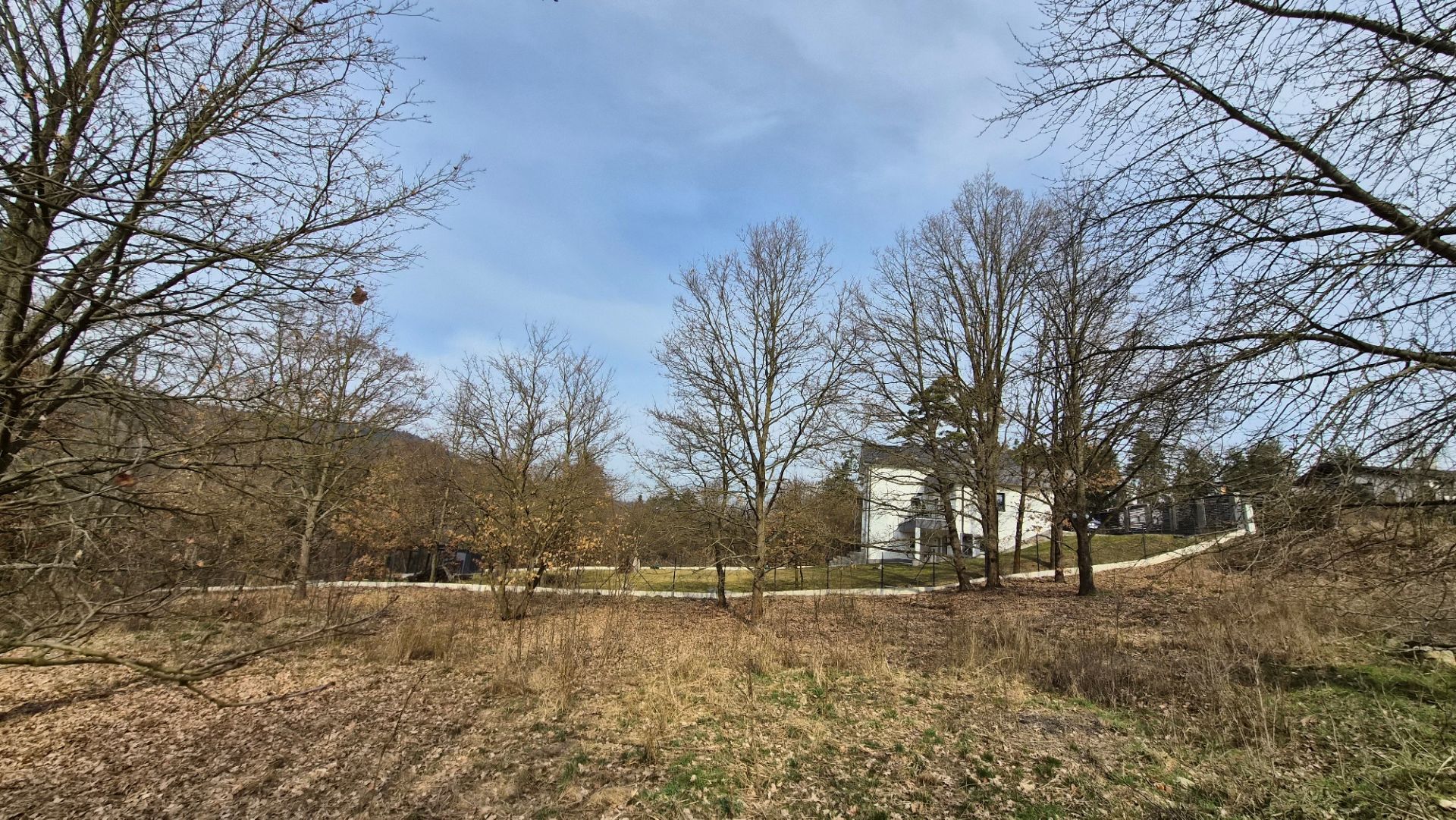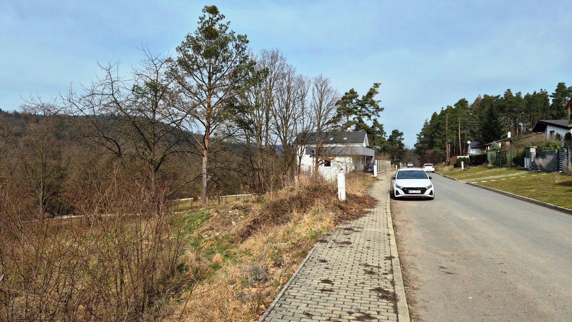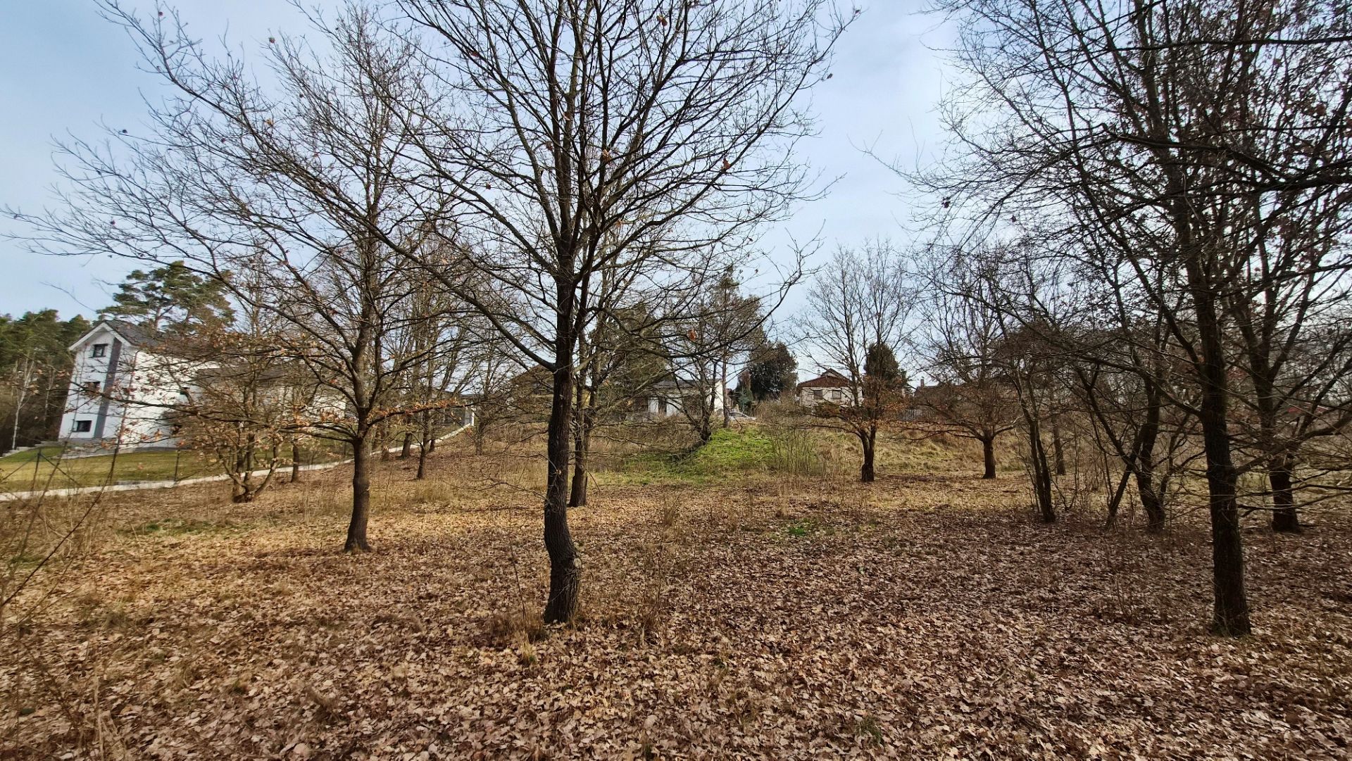 Pozemek je mírně svažitý se západní orientací, z jedné strany oplocený, v zastavěné části obce.